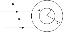 用折射率为n的透明物质做成内、外径分别为a、b的球壳,球壳的内表面涂有能完全吸收光的物质,如图所示,当一束平行光从左侧射向该球壳时,被吸收掉的光束在射进球壳左侧外表面前的横截面积为________(已知a小于b/n)