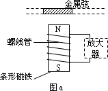 电吉他是利用电磁感应原理工作的一种乐器.如图a所示为电吉他的拾音器的原理图,在金属弦的下方置有一个连接到放大器的螺线管.一条形磁铁固定在管内,当拨动金属弦后,螺线管内就会产生感应电流,经一系列转化后可将电信号转为声音信号.