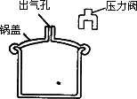 某压力锅结构如图所示,盖好密封锅盖,将压力阀套在出气孔上,给空的压力锅加热,当锅内气体压强达到一定值时,气体就把压力阀顶起放气,设压力阀被顶起放气一次后,即停止加热.