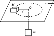如图所示,细绳一端系着质量M=0.6 kg的物体,静止于水平面,另一端通过光滑小孔吊着质量m=0.3 kg的物体,M的中点与圆孔距离为0.2 m,并知M和水平面的最大静摩擦力为2 N,现使此平面绕中心轴线转动,问角速度ω在什么范围m会处于静止状态?(g取10 m/s2)