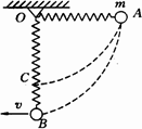 如图所示,质量为m=2 kg的小球系在轻质弹簧的一端,另一端固定在悬点O处,将弹簧拉至水平位置A处,且弹簧处于自然状态,弹簧的原长OA=0.3 m;然后小球由静止释放,小球到达距O点下方h=0.5 m处的B点时速度为VB=2 m/s,求