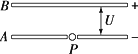 如图所示,A、B为两块足够大的相距为d的平行金属板,接在电压为U的电源上.在A板的中央P点放置一个电子发射源.可以向各个方向释放电子.设电子的质量为m、电荷量为e,射出的初速度为v.求电子打在B板上的区域面积?(不计电子的重力).