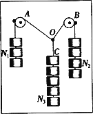 有同学利用如图所示的装置来验证力的平行四边形定则:在竖直木板上铺有白纸,固定两个光滑的滑轮A和B,将绳子打一个结点O,每个钩码的重量相等,当系统达到平衡时,根据钩码个数读出三根绳子的拉力TOA、TOB和TOC,回答下列问题: