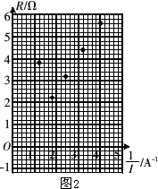 (2)接通开关,逐次改变电阻箱的阻值R,读出与R对应的电流表的示数I,并作记录.当电阻箱的阻值R=2.6 Ω时,其对应的电流表的示数如图1所示.处理实验数据时,首先计算出每个电流值I的倒数,再制作R-坐标图,如图2所示,图中已标注出了(R,)的几个与测量对应的坐标点.请你将与图1实验数据对应的坐标点也标注在图2上.