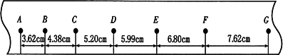 某同学在“探究小车速度随时间变化的规律”的实验中,用打点计时器记录了被小车拖动的纸带的运动情况,在纸带上确定出A、B、C、D、E、F、G共7个计数点.其相邻点间的距离如图所示,每两个相邻的计数点之间还有4个打印点未画出.