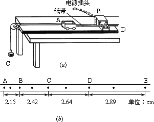 (1)图(b)为某次实验得到的纸带,该同学由纸带上的打点每两个点取一个计数点,得到A、B、C、D、E几个计数点,测量得相邻计数点间的长度如图中所示.则根据纸带可求出小车的加速度大小为________m/s2.(保留两位有效数字)