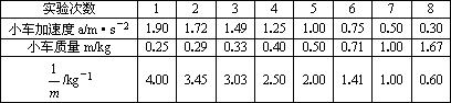 (2)保持砂和小砂桶质量不变,改变小车质量m,分别得到小车加速度a与质量m及对应的.数据如下表: