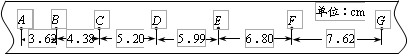 某同学在“探究小车速度随时间变化的规律”的实验中,用打点计时器记录了被小车拖动的纸带的运动情况,在纸带上确定出A、B、C、D、E、F、G共7个计数点.其相邻点间的距离如图所示,每两个相邻的计数点之间还有4个打印点未画出.