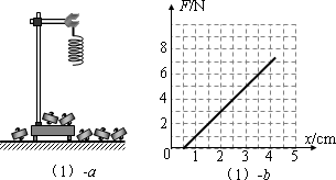 如下图(1)-a所示,用铁架台、弹簧和多个已知质量且质量相等的钩码,探究在弹性限度内弹簧弹力与弹簧伸长长度的关系实验.