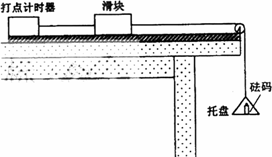 物理小组在一次探究活动中测量滑块与木板之间的动摩擦因数.实验装置如图,一表面粗糙的木板固定在水平桌面上,一端装有定滑轮;木板上有一滑块,其一端与电磁打点计时器的纸带相连,另一端通过跨过定滑轮的细线与托盘连接.打点计时器使用的交流电源的频率为50 Hz.开始实验时,在托盘中放入适量砝码,滑块开始做匀加速运动,在纸带上打出一系列小点.
