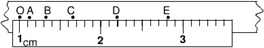 如图所示,某同学用mm刻度尺进行测量,请帮忙读出B、C、D、F在刻度尺上的位置,填到下表中: