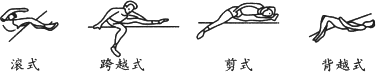 如图所示,某运动员以相同的速度跳起后分别以下列四种姿势过杆,则他在哪一种过杆姿势中有望取得最好的成绩,请简述理由.