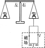 如图所示的天平可用来测定磁感应强度.天平的右臂下面挂有一个矩形线圈,宽为l,共N匝.线罔的下部悬在匀强磁场中,磁场方向垂直纸而.当线圈中通有电流I(方向如图)时,在天平左、右两边加上质量各为m1、m2的砝码,天平平衡.当电流反向(大小不变)时,右边再加上质量为m的砝码后,天平重新平衡.由此可知