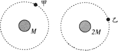 如图,甲、乙两颗卫星以相同的轨道半径分别绕质量为M和2M的行星做匀速圆周运动,下列说法正确的是