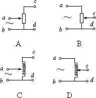 如图所示的四个图中,a、b为输入端,接交流电源、cd为输出端,下列说法中错误的是