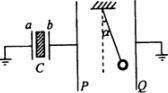 如图所示,C为中间插有电介质的电容器,a和b为其两极板;a板接地;P和Q为两竖直放置的平行金属板,在两板间用绝缘线悬挂一带电小球;P板与b板用导线相连,Q板接地.开始时悬线静止在竖直方向,在b板带电后,悬线偏转了角度a.在以下方法中,能使悬线的偏角a变大的是: