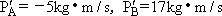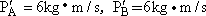 A、B两小球在光滑水平面上沿同一直线向同一方向运动,A球的动量为5 kg·m/s,B球的动量为7 kg·m/s,当A球追上B球时发生对心碰撞,则碰撞后A、B两球动量的可能值为: