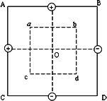 现有两个边长不等的正方形,如图所示,且Aa、Bb、Cc、Dd间距相等.在AB、AC、CD、DB的中点分别放等量的正电荷和负电荷,若取无穷远处电势为零,则下列说法中正确的是