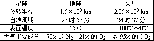 根据以上信息,关于地球及火星(行星的运动可看做圆周运动),下列推测正确的是