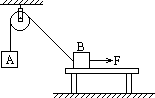 如图所示,物体A和B质量均为m,且分别与轻绳连接跨过定滑轮,当用力拉B沿水平面向右作匀速运动的过程中,绳对A的拉力大小是[ ]