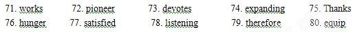 Yuan Longping is a man who 1.w the land, does his research and grows hybrid rice. He is an agricultural 2.p . He 3.d his whole life to finding ways to increase the rice output without 4.e the area of fields. 5.T to his research, more people can be free from 6.h .Yuan is 7.s with his life. He enjoys 8.l to violin music. He cares little about his money and fame. He 9. t________ gives millions of yuan to 10. e_______ others for their research. He is a great person.