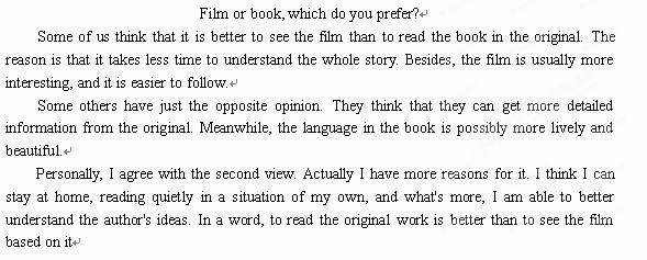当前不少文学作品被改编成电影。有人选择看电影,有人则喜欢读原著。请你以“Film or book, which do you prefer?”为题,按照下列要点写一篇英语短文: