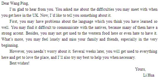 假设你叫李华,现在英国工作,你的朋友王平写信告诉你他打算赴英留学,想知道初到英国可能会遇到的困难。请你用英语给他写一封回信,信的内容应包括: