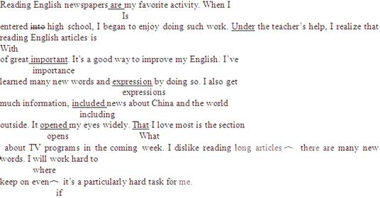 ¼Ù¶¨Ó¢Óï¿ÎÉÏÀÏʦҪÇóͬ×ÀÖ®¼ä½»»»ÐÞ¸Ä×÷ÎÄ£¬ÇëÄãÐÞ¸ÄÄãͬ×ÀдµÄÒÔÏÂ×÷ÎÄ¡£ÎÄÖй²ÓÐ10´¦ÓïÑÔ´íÎó£¬Ã¿¾äÖÐ×î¶àÓÐÁ½´¦¡£´íÎóÉæ¼°Ò»¸öµ¥´ÊµÄÔö¼Ó¡¢É¾³ý»òÐ޸ġ£