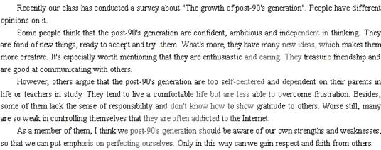 Recently our class has conducted a survey about ¡°The growth of post-90¡¯s generation¡±. People have different opinions on it. _________________________________________________________________