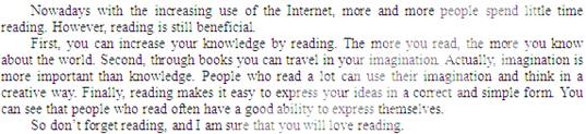 随着网络的日益普及, 人们用于读书的时间逐渐减少。请你根据以下要点写一篇英语短文,并发表在自己的英语博客上。
