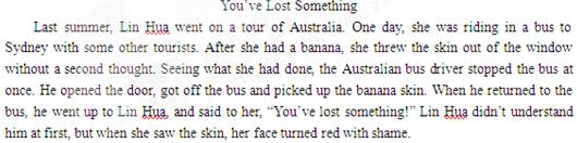 注意:1. 短文必须包含图画所有内容,可适当增加细节或感受,使其连贯完整。