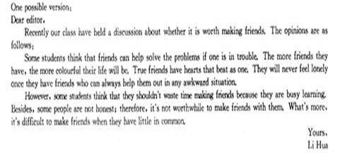 随着社会的发展,中学生交友范围越来越大。假设你叫李华,你们班正在召开一次讨论会,同学之间对交友有不同的看法。请根据下列提示给某报社编辑写一封信。