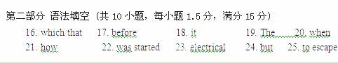 More than 220 people were killed in the fire __16__destroyed the Capital Building on February 4th, 1974. The building was finished only a few months __17_ the fire; 18 was Sao Paulo’s newest building. All the 25 floors of the office building were completely destroyed. __19___ fire also destroyed cars which belonged to the people who worked in the building.