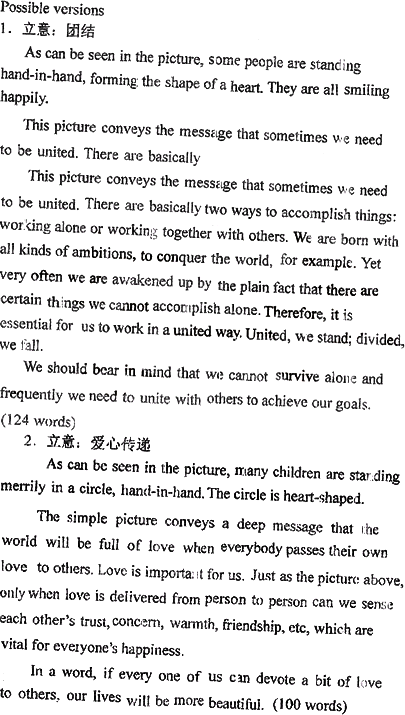 一、评分原则: 1.本题总分为15分,按4个档次给分。 2.评分时,先根据文章的内容和语言质量初步确定其档次,然后以该档次的要求来衡量,确定或调整档次,最后给分。 3.评分时应考虑:文章是否扣题,结构是否完整,内容是否充实、健康,思维是否活跃,逻辑是否清晰,语言是否规范,交际是否得体。 4.拼写、标点符号或书写影响内容表达时,应视其影响程度予以考虑。英、美拼写及词汇用法均可接受。 5.词数少于50,从总分中减去1分 二、各档次的给分范围和要求: