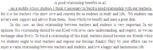 某英文报正在就建立良好的师生关系进行讨论。你作为一名中学生,请参与讨论。请你围绕 “A good relationship benefits us all”这个话题,根据以下要点,用英语写一篇120个词左右的短文。