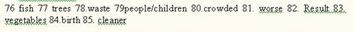 | Problems | •More (76)___________ are caught. •More (77)___________ are cut down. •More (78)___________ products are put into rivers. •More (79)___________ are born. |