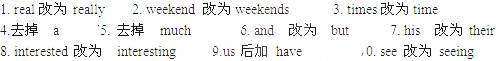 假定英语课上老师要求同桌之间交换修改作文,请你修改你同桌写的以下作文。文中共有10处语言错误,每句中最多两处。错误涉及一个单词的增加、删除或修改。