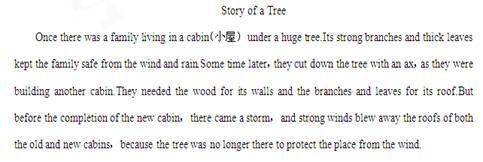 Once there was a family living in a cabin(小屋) under a huge tree._____________________