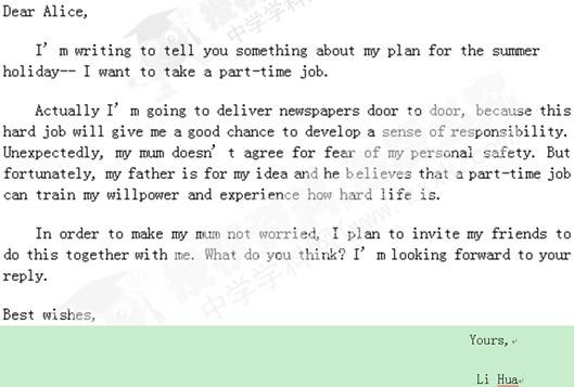 假设你是李华,计划利用暑假打工。请根据以下要点用英语给你的美国朋友Alice写一封信。