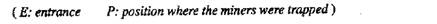 75. Which of the following shows the position where the miners were trapped?
