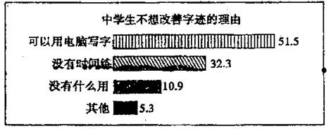 随着电脑普及率的提高,老师、家长和学生对字迹的重视程度降低了。据一项调查显示,有85.8%的中学生说自己的字迹不好看,而他们又不想改善字迹,其理由有很大差别。