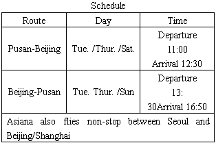 3.According to the schedule you can not fly from Beijing to Pusan ________.