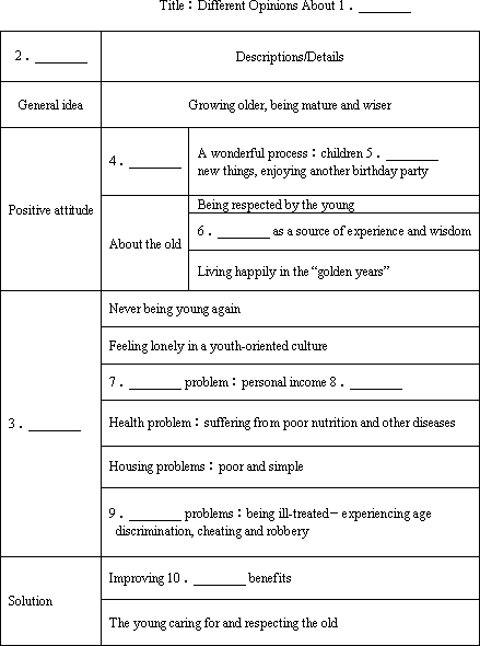阅读短文,根据所读内容在表格的空格处填上适当的单词或短语,每空不超过3个单词。