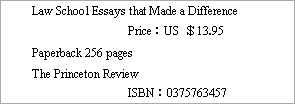 This book puts you in the admissions office's seat.It gives you the intimate details-test scores, GPAs(grade point average), demographic information, and personal statements-of 34 law school hopefuls, then shows you why they got into the colleges they applied to, and why some didn't.It's invaluable information that will help students evaluate(评估)their own chances of admission to the most selective law schools in the United States.