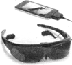 This is the only personal media viewer that provides a private viewing experience just like watching a widescreen 55 inch television from 10 meters away.It connects to a video iPod, iPhone, portable DVD player.Includes two AA batteries that provide up to six hours of continuous operation and iPod cable.