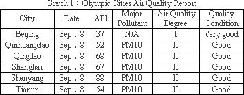 China’s government has been trying all measures to reduce pollution in the past few years.Now people can enjoy a fresh environment everywhere.The following two graphs are adopted from the column of “City Information” on the webpage of Beijing Review.