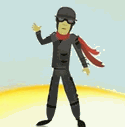 A cartoon man dressed in old time pilot clothing greets visitors to Admongo."Call me Haiz", he says upon arrival in a rocket ship that opens up with a crazy world inside it.Spacey dance music plays in the background as Haiz tells visitors that they need to learn about advertising.