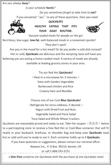 Directions:Read the following passages.Each passage is followed by several questions or unfinished statements.For each of them there are four choices marked A, B, C, and D.Choose the one that fits best according to the information given in the passage.