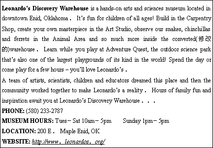 What do Science Museum Oklahoma and Leonardo's Discovery Warehouse have in common?
