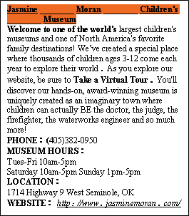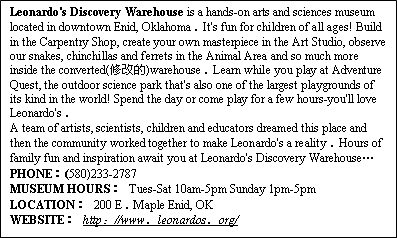 Visitors can phone(405)382-0950 if their children want to enjoy role-playing programs.